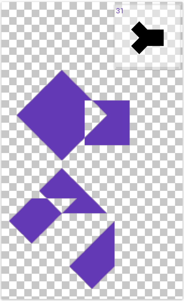 탱그램 퍼즐 게임입니다. 빈공간으로 도형을 이동하여 빈공간을 모두 채우고 정해진 모양을 만들어야 하는 게임입니다. 스테이지에 따라 힌트가 없을 수도 또는 1개 이상에 힌트가 존재합니다.